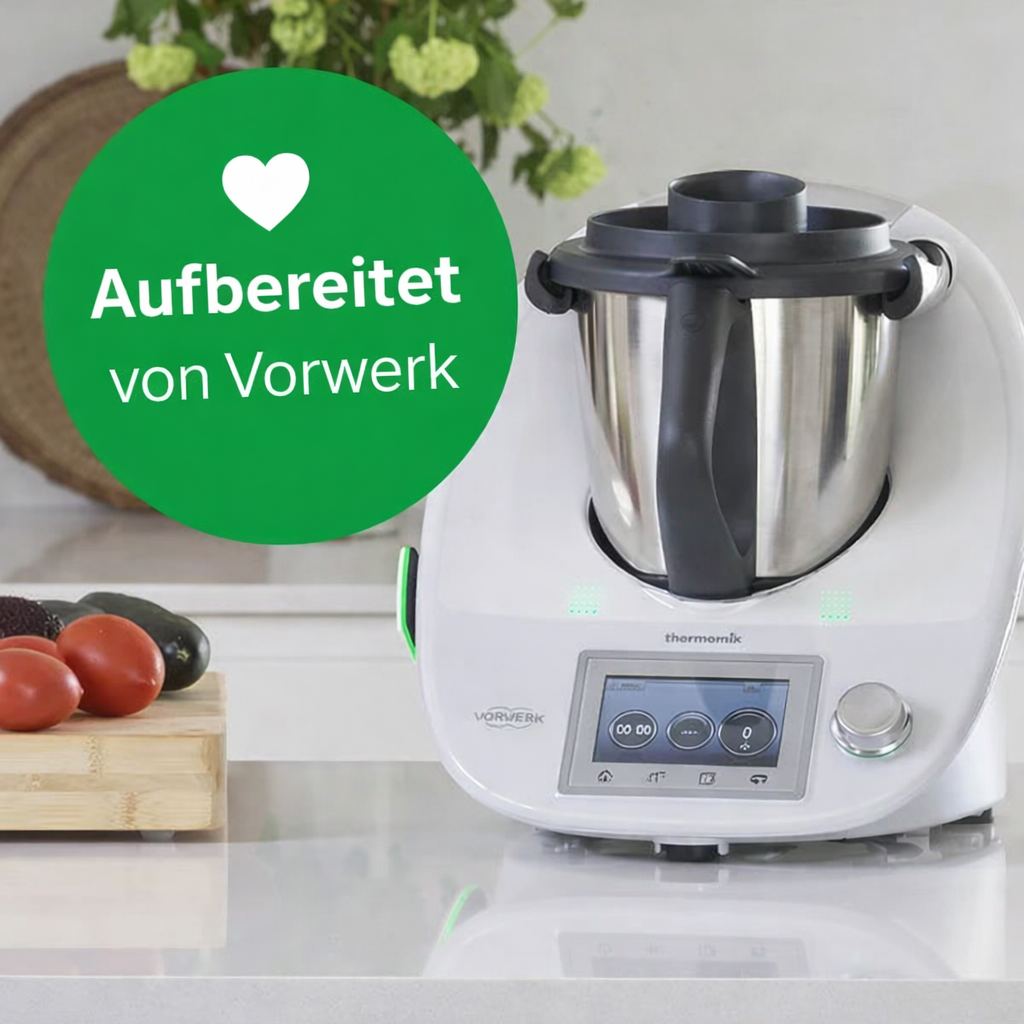 • Mit dem Kauf eines generalüberholten Vorwerk-Produkts entscheiden Sie sich für eine hochwertige Aufbereitung durch erfahrene Techniker, die ausschließlich für die Reparatur von Thermomix-Geräten geschult sind.